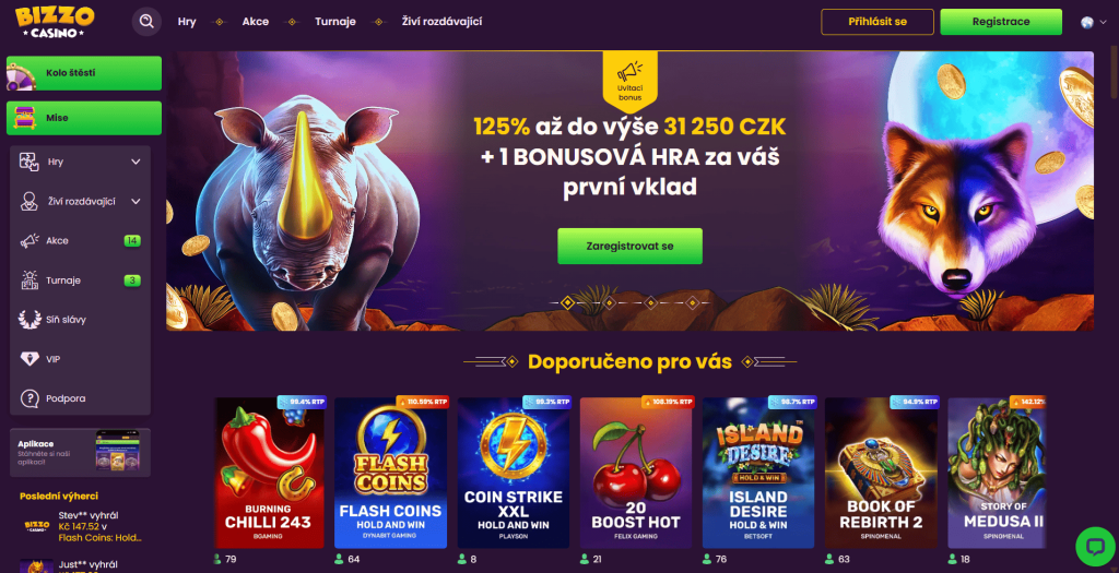 Při prvním vstupu na stránky Bizzo Casino mě okamžitě zaujal zářivý, animovaný design v purpurových tónech. Celé rozhraní působí velmi moderně a navigace je intuitivní, což oceňuji zejména při hře na mobilu. Platforma se silně orientuje na sloty a gamifikaci, což potvrzuje i jejich propracovaný VIP klub a pravidelné turnaje. Velkým plusem je pro mě široká podpora kryptoměn, která doplňuje tradiční platební metody. Pokud hledáte nové české casino online, Bizzo je díky své lokalizaci a pestré nabídce skvělou volbou.