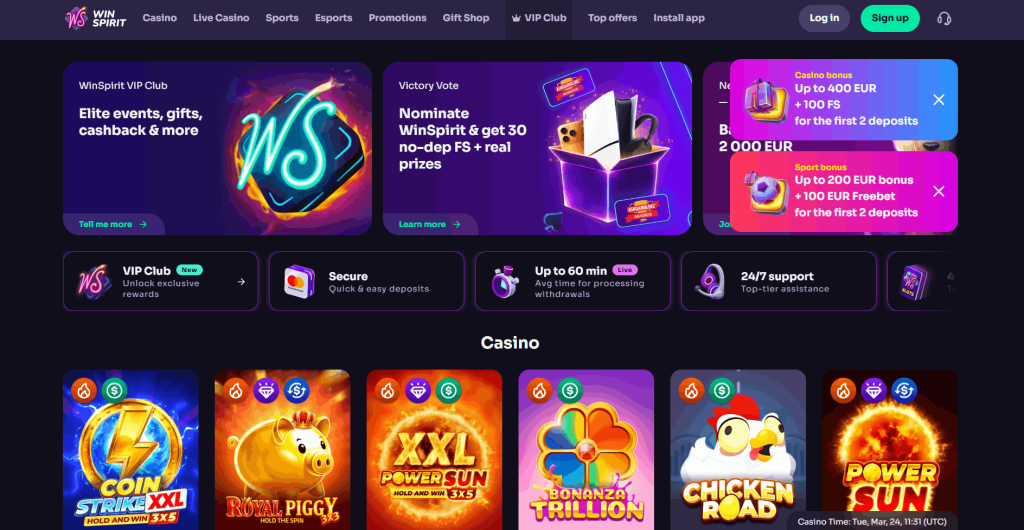 WinSpirit mě zaujal svou moderní purpurovo-neonovou estetikou, která okamžitě navodí atmosféru nočního Las Vegas. Co považuji za jejich největší zbraň, je systém denního pojištění vkladů. Všiml jsem si, že pro aktivní hráče je tento mechanismus mnohem výhodnější než jednorázové bonusy. Pokud hledáte nové online casino cz, WinSpirit nabízí vyvážený mix mezi sloty a sportovním sázením s velmi přátelským uživatelským rozhraním.